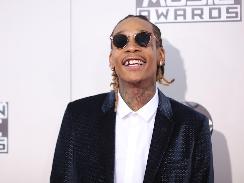 Wiz Khalifa pretending to smoke a joint on the red carpet at the 2015 American Music Awards at Microsoft Theater on November 22, 2015 in Los Angeles, California.