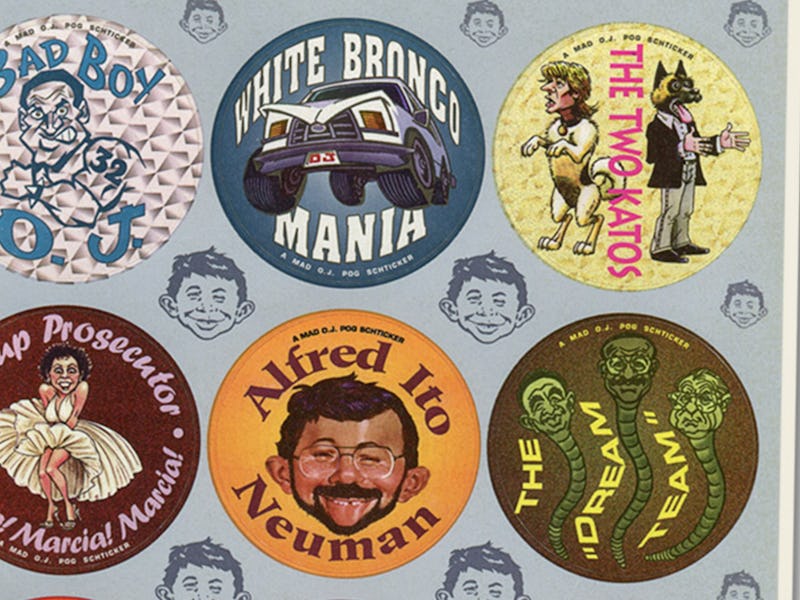 If you were to come across a pog today — and you were a child or parent in the ’90s — no doubt it would unlock sense-memories from a bygone time. Your thoughts would be carried back to the larger-than-life cultural moment when the zeitgeist revolved, simultaneously, around that popular, cardboard-disc-based children’s game and the trial of O.J. Simpson for the murder of his ex-wife Nicole Brown Simpson. Pogs’ heyday came smack dab in the middle of the ’90s. Local newspaper reports and other retrospectives on the pog craze point to early 1995 being the apex of the game’s popularity. This, of course, was during the thick of the O.J. trial, which is being explored again this year in the Ryan Murphy-created American Crime Story: The People v. O.J. Simpson and an ESPN documentary.