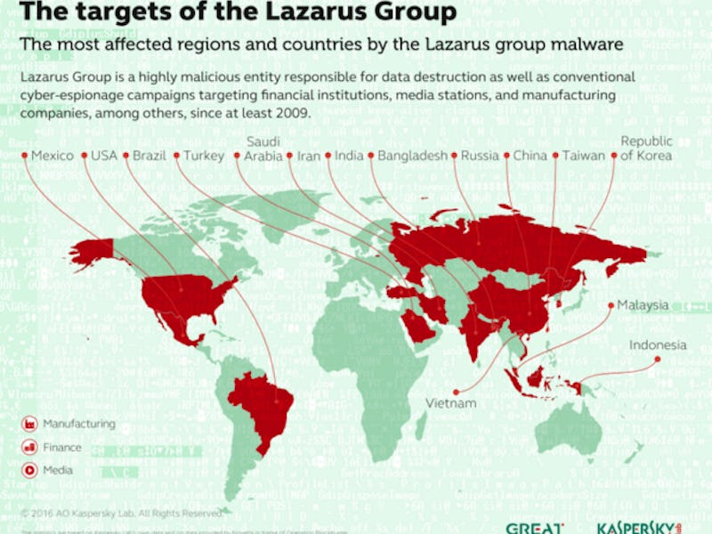 Novetta, along with AlienVault and Kaspersky Lab, has linked the Lazarus Group to a string of other attacks, including a 2013 attack on South Korean television studios and a “spearphishing” maneuver that used fake South Korean media. The focus on South Korea certainly supports the U.S. government’s assertion that the group is based around North Korea’s military. The Novetta report is oddly reticent about drawing such a conclusion, going only so far as to agree that it’s probably backed by some government.