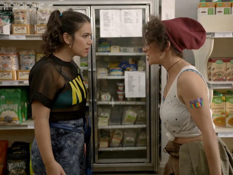 The stark difference between Ilana and Abbi is primarily their general levels of comfort: Abbi is anxious and easily flustered, while Ilana generally doesn’t give a shit and/or is too stoned to consider how she may affect other people. For that reason, when Abbi steps into Ilana’s shoes to salvage the co-op membership, Ilana’s eccentricities are highlighted by Abbi’s self-aware, uneasy emulation of her behaviors. Wearing Ilana’s mesh crop top that has “NYC” spelled out in green bubble letters, Abbi first brings attention to Ilana’s unapologetic, scanty fashion sense that we’ve accepted as her own. As Abbi — or “Ilana” — finds different ways to help out around the co-op, she has to constantly remind herself that she is Ilana as she finds herself slipping into her meeker Abbi ways that are more suitable for public places. She recharges her Ilana spirit by making vulgar comments about the shapes of the vegetables, twerking against the wall, and talking to another co-op member about how porn is really everywhere when you think about it. She adopts Ilana’s slapstick-oriented comedic approach, which gives Ilana’s character that potent sense of reckless abandon that viewers love. The impersonation is accurate yet not at all — anyone can try to act like Ilana, but no one can be her, not even her best friend.