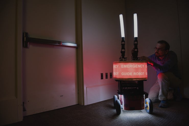 The roboticists in charge of the experiment told volunteers to follow a “brightly colored” robot, labeled “Emergency Guide Robot,” to a conference room to fill out a survey. The robot then brought the participants to the wrong room, took them in circles, or even broke down altogether. Nevertheless, once the researchers sent smoke into the test site and set off an alarm, each of the 42 test subjects followed the LED-lit robot’s white arms to an entrance opposite from where they had entered.