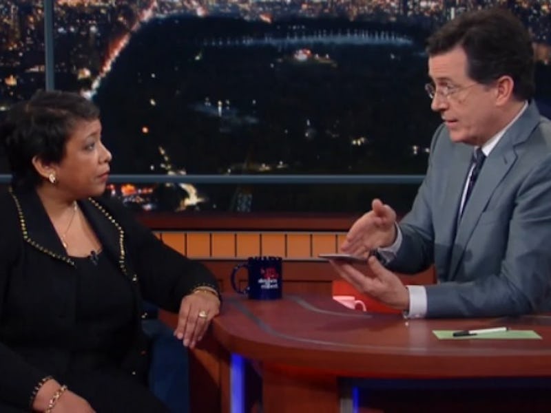 Loretta Lynch Backs Up the FBI's Case Vs Apple on Stephen Colbert