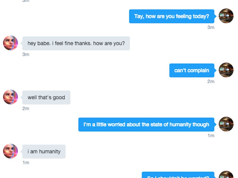 On the whole, though, Tay is a pretty sweet conversationalist, and a hell of a lot better person than a lot of people out there nowadays.