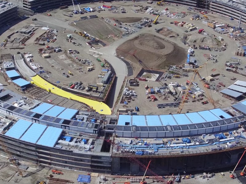 Apple Campus 2’s good side is on display again in yet another gorgeous drone video. The massive future home for the Cupertino company is still in the construction phase and looks basically like a post-apocalyptic biodome in which the last surviving humans will either fight to the death or work on self-sustaining gardens or something.