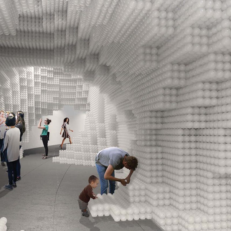The new public art space will open on April 30, as the Dupont Underground Art Coalition recently announced the first installation designed by New York City architecture firm Hou de Sousa that incorporates over 650,000 plastic white balls (like the ones you find in playground ball pits).