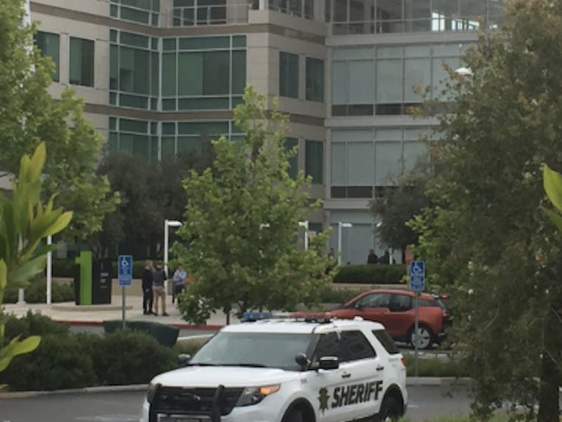At Apple campus Infinite Loop, for a 10-56 attempt. Female employee bleeding with a head wound to the head, possibly has a gun. Her, looks like security was escorting the employee down and the Westside units are just now arriving. I do have further, they are advising that there’s a body in one of the conference rooms with a gun so we’re not really sure if there’s multiple people involved.