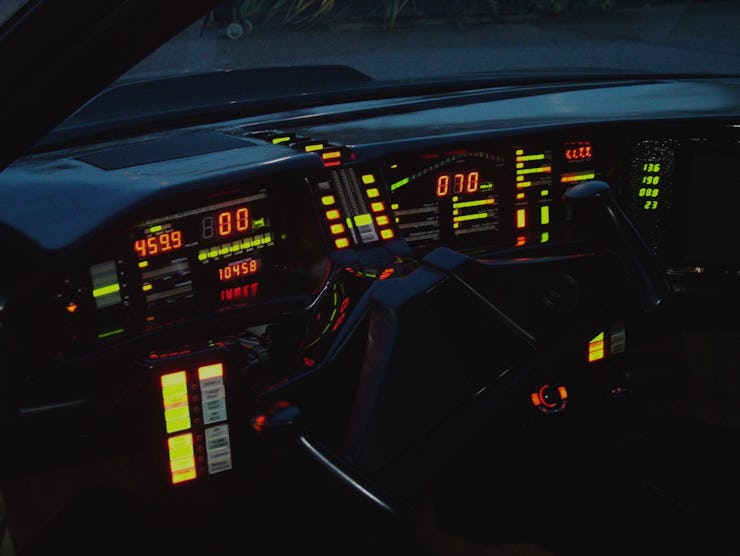 Flashy rides were an integral part of 1980s sci-fi and, because filmmakers spent the entire decade trying to perfect the cockpit shot, interiors and displays became just as iconic as sculpted hoods. Designers went to town on dashboards, gifting the most memorable sci-fi whips with CRT displays, voice synthesizers, and lots and lots of LEDs. But the interfaces were far from prescient. No one saw monitor-style screens in today’s Teslas (and pick-up trucks) coming. But what they did envision was, though silly, beautiful in its own right.