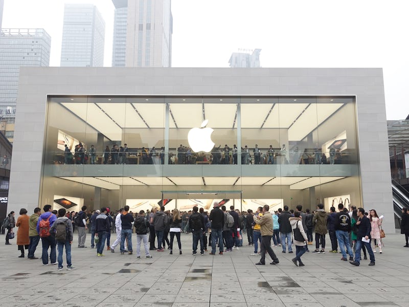 People visit the second Apple store in Shenyang on January 9, 2016 in Shenyang, Liaoning Province of China. 6 revolving glass doors were set in the new Apple store which was the second store in Shenyang.