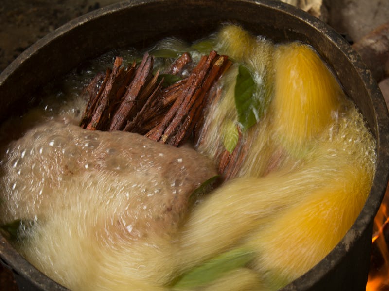 In the Quechua language, which is spoken in Peru and Chile, the huasca in ayahuasca refers to “woody vine” and the aya, loosely, to “dead body.” The woody vine in question refers, most of the time (shamanistic recipes aren’t exactly rigorous), to a plant called Banisteriopsis caapi, which is mashed up and boiled to make the base brew.
