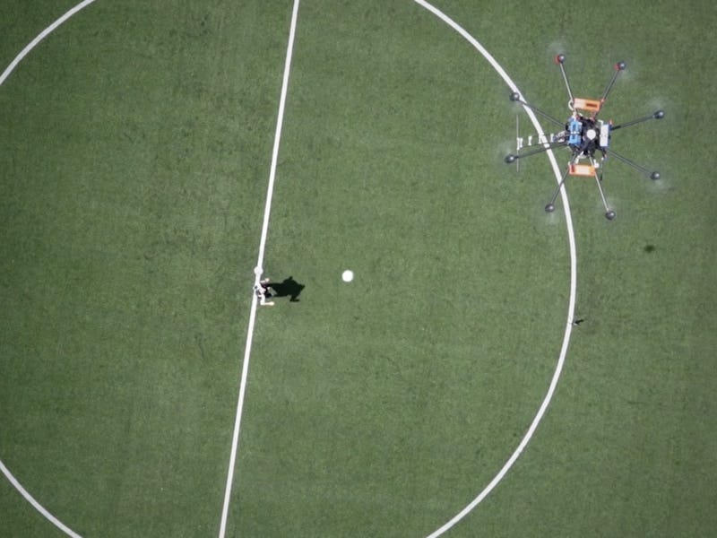 Watch Drone Drop a Soccer Ball 105 Feet and Be Perfectly Controlled