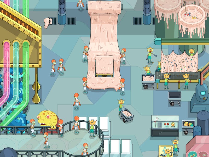 The original game, spread across 120 Instagram accounts and over 1,800 individual squares, allows users to click hidden photo tags and warp to different levels to obtain little comics, clips from the show (which have since aired), and mini-games. Today’s new expansion, which Adult Swim calls Interdimensional Cable Adventures, introduces 20 new levels, and a bunch of comics involving Gazorpazorpfield, everyone’s favorite enchilada-loving bloodthirsty alien. There’s also a full mini-game set at the Plumbus factory, which looks like this: