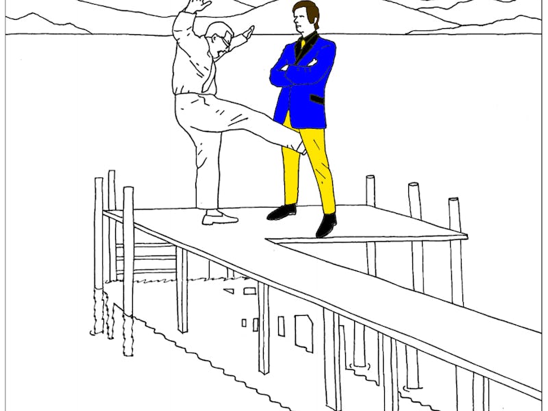 Now, Link and Bunnage have created a coloring book. It’s called, simply, the Mindless Violence Colouring Book. And that’s exactly what it is: a collection of mindlessly violent, outlined scenes, just waiting to become variegated, waiting to spring to life. The book promises “an overwhelming sense of inner peace as you immerse yourself and your pencils in a world of detail and surprises.”