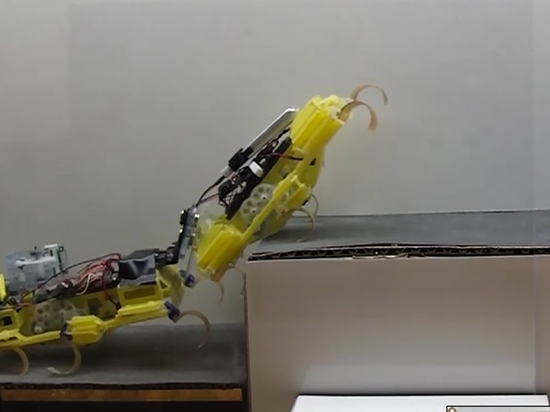Perhaps the coolest thing about this bot is that the crawler can autonomously adjust its speed and jumping power to vault itself on top or over various surfaces.
