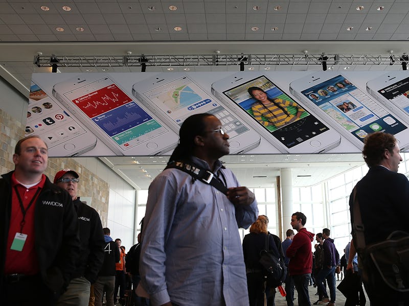 Audience members wait for the start of an Apple event at the Worldwide Developer's Conference on June 13, 2016 in San Francisco, California.