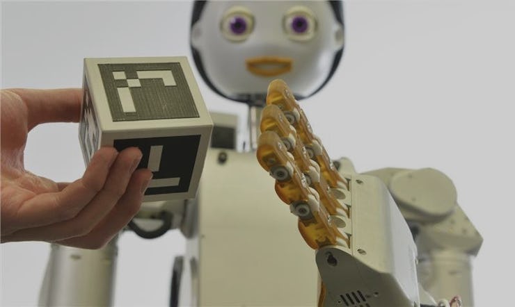 Adding facial expressions meant “Floka” could communicate to humans if it was angry, worried, happy, or interested. CITEC did not explain what an “interested” facial expression looks like, but it presumably involves leaning forward and raising the eyebrows in a totally-not-creepy way.