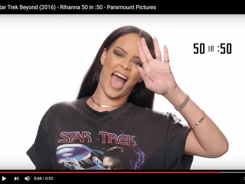 Star Trek Beyond hits theaters everywhere July 22, and Rihanna’s single is available on all streaming platforms. Watch the “50 in :50” bit below.