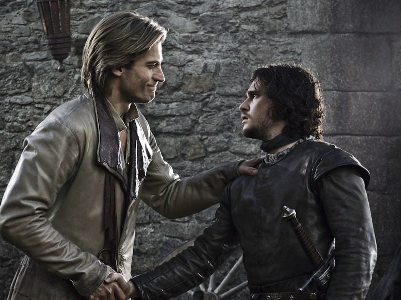 In “Lord Snow,” the third episode of Season 1, Jaime Lannister tells Robert Baratheon his first kill was an outlaw from the Brotherhood. Of course, we now know that he’s referring to the Brotherhood Without Banners, which Sandor Clegane recently joined forces with in Season 6. Perhaps Thoros of Myr even resurrected Jaime’s first kill.