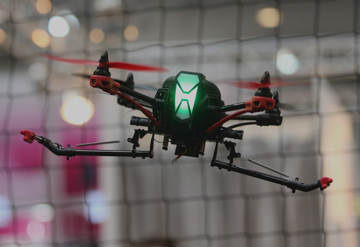 A Yuneec Typhoon H drone is flown at CES 2016 at the Las Vegas Convention Center on January 7, 2016 in Las Vegas, Nevada.