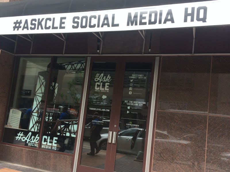 Cleveland’s tourism bureau set up a storefront headquarters where volunteers sit in front of computer screens, monitoring keyword and geotagged searches like the ones above. The idea is to slide into visitor’s mentions, engage them, and point them towards a good pulled-pork sandwich.