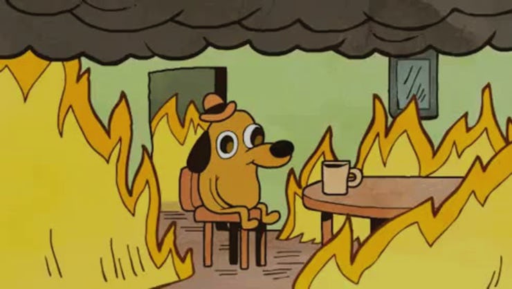 It's a 'This is Fine' Dog Eat Dank Meme World