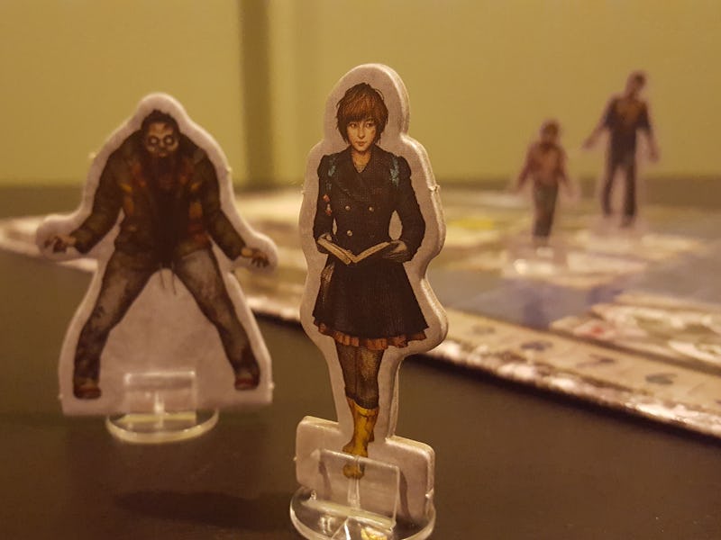 For each survivor in your party, you roll dice plus one. Each special action you want to take, like killing a zombie or rifling through the pile of cards at the gas station for that katana, costs a die with a high enough roll. (What that high enough roll is depends on the character you want to take the action — searching with the blind motivational speaker, for instance, means you have to have rolled a six.)