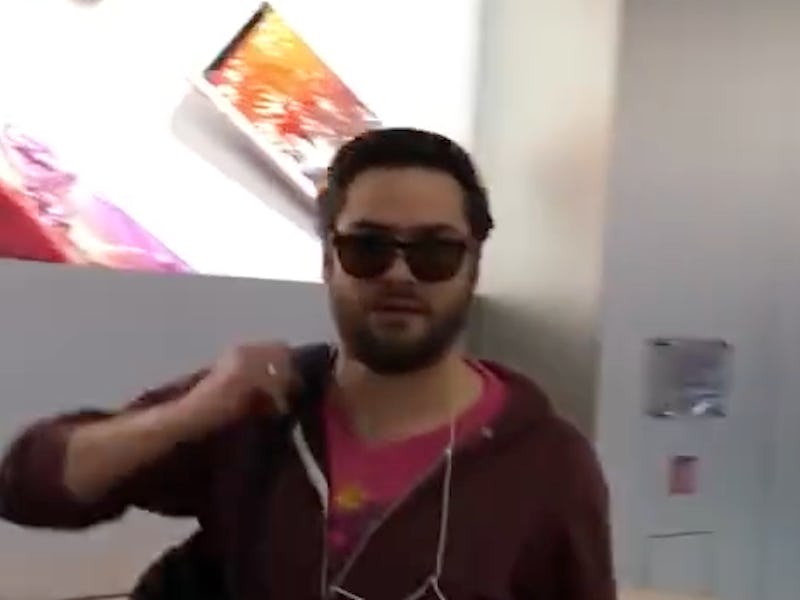 In a video posted to Twitter Thursday, a man walks around an Apple store, pulling iPhones from their docks and smashing them with a steel ball similar to the ones used for bocce. He eventually explains his smashing spree to the stunned Apple employees and customers around him.