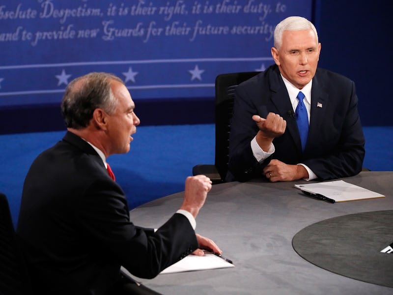 The first and, mercifully, only vice presidential debate took place on Tuesday night, and for while it looked like Democratic candidate Tim Kaine and Republican Mike Pence were going to repeat the first presidential debate’s discussion of cyber war. But, instead, Pence quickly pivoted to Hillary Clinton’s private email server.
