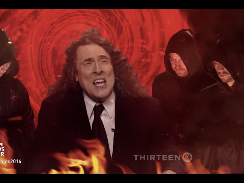 Here’s the premise: The clash of the candidates opens up a wormhole to another universe. Weird Al also get sucked in and replaces Chris Wallace as the moderator. All of his questions are answered by Clinton and Trump — in the key of B flat minor. Suddenly, it’s much easier to listen to Trump’s bullshit in this wacky parody.