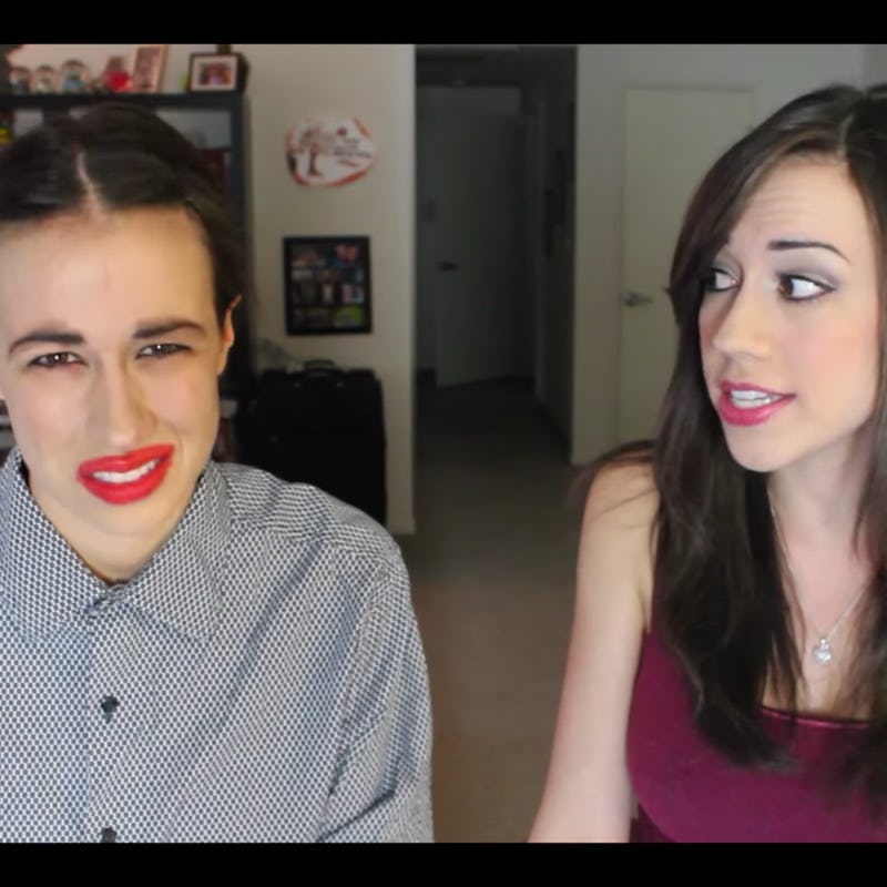 Scratch that. In Ballinger’s case, it is an cult of two personalities — Miranda Sings, and Colleen Ballinger herself. The actress, who’s also trained in improv, still retains her original YouTube usernames, MirandaSings (character channel) and PsychoSoprano (Colleen’s channel), and uploaded her first video as Miranda Sings during Christmastime in 2007 when she was twenty-one. At the time, it was a parody of people she knew in school whose vanity and confidence outweighed their ability, resulting in a pretty embarrassing, overwrought rendition of “White Christmas.” At that time, the Miranda character and Ballinger were more or less indistinguishable — it would be several months later that the makeup and signature stink-eye would come into play.