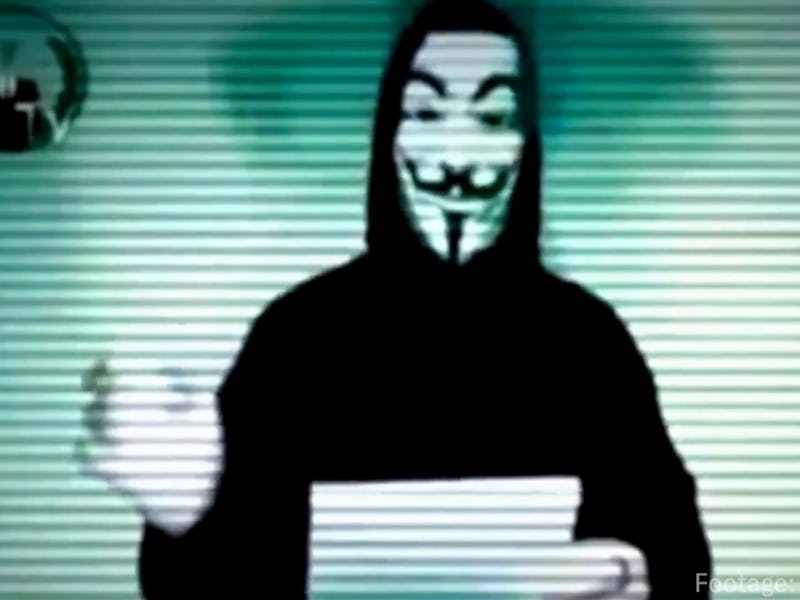 There’s one vague shot of someone sitting outside, with his face obscured, on a laptop. After that image comes the familiar Anonymous YouTube screenshot, featuring some hacker in a Guy Fawkes mask reading from a script.