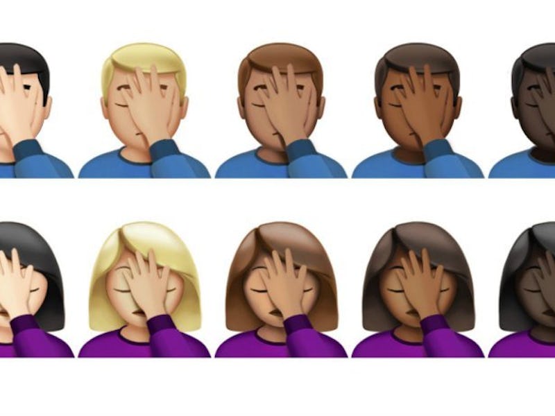 This week, Apple introduced its first facepalm emoji, ceding to the pleas of exasperated texters who for years had to design their own, inevitably janky workarounds. At a time when there is more reason than ever before to cup your sad face in your own trembling hands, Apple is finally giving the people a way to quickly communicate their own frustration and misery.