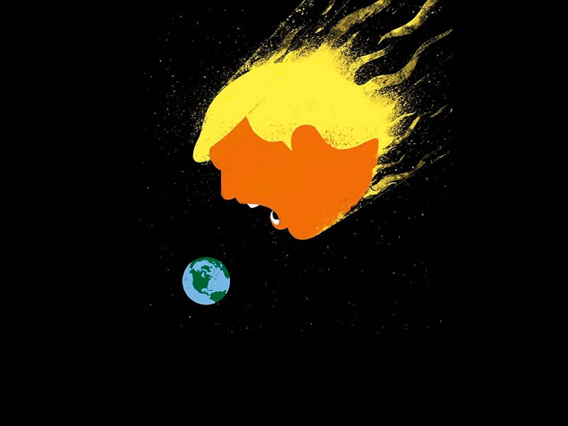 Donald Trump’s victory in the 2016 U.S. presidential election is a world-changing event, and many people around the globe think it’ll be a total disaster. A major German news magazine, Der Spiegel, cleverly and terrifyingly illustrated this belief with a cover that portrays “The Donald”‘s screaming, flaming orange head as a massive meteor that’s about to destroy — or maybe eat? — planet Earth.
