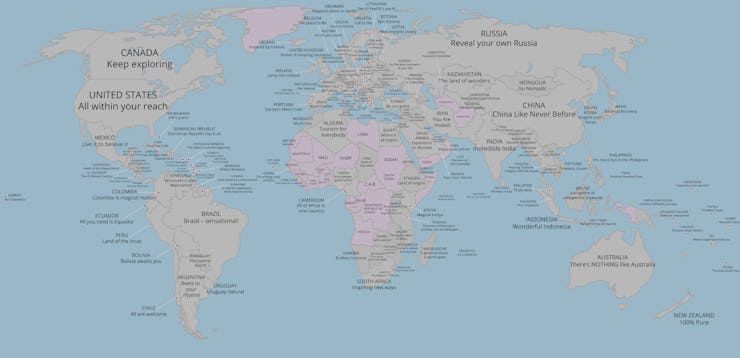 Planning a trip? Tourism boards will try to sway you with fancy brochures, but perhaps the way to go is follow your instincts and book a trip solely based on the slogan. A new map from FamilyBreakFinder published Tuesday manages to solve this unlikely scenario by collecting the world’s tourism slogans onto a single map. The world, as it turns out, is home to some fantastic slogans.