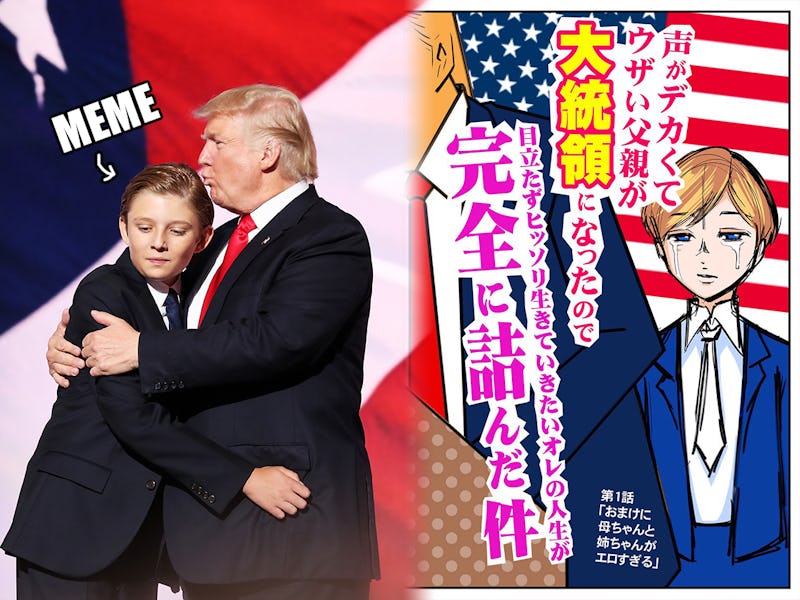 Manga artist Yuusuke Hori created what is so far the best Barron Trump meme when he drew cover art for a (sadly fictional) manga about Barron. “My loud, annoying dad is president, so the quiet unassuming life I wanted is completely over,” reads the text on the cover, fitting in with the image of Barron as a kid who just doesn’t care about what’s going on around him. (Chapter one is titled “Also, My Mom and Sister Are Too Sexy”).