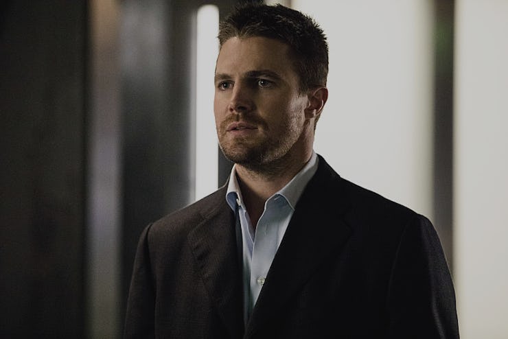 The mid season finale of Arrow snapped back to reality in the wake of the alien “Invasion!”, taking a hefty emotional toil on pretty much everyone in Team Arrow: Evelyn is a confirmed traitor, Felicity has lost her boyfriend, Curtis gets dumped, and Diggle has been captured. But they saved perhaps the most jaw-dropping moment for the final few seconds of this half-season. After a sad-and-wounded tryst with Susan Williams in her apartment, Oliver returns to the Arrow-cave for this bombshell to happen:
