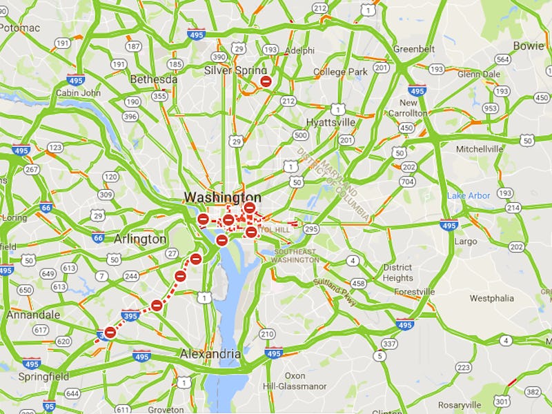 Now commuter traffic around Washington DC usually is pretty bad. This is what it looked like yesterday around 10 a.m.