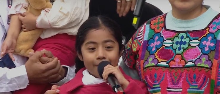 Sophie, who made headlines when she met the pope and visited the White House, spoke on Saturday before the gathered crowd. “Fight with love, faith, and courage so our families won’t be destroyed,” the diminutive orator told the crowd in Spanish. “I am here to tell the children, please do not be afraid. We are not alone.” She then rallied the crowd, chanting, “Si se puede!” which means “Yes, it can be done!”