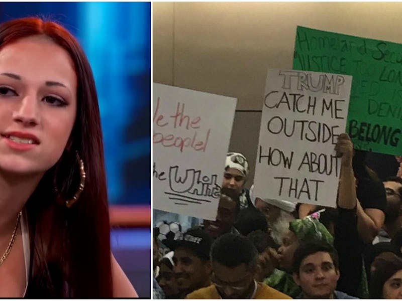 By now, we know that memes can get political. Over the weekend, in response to President Donald Trump’s travel ban, people in cities dotting the nation flooded airports to voice their opposition with chanting and signs. One creative protester at Dallas/Fort Worth International Airport caught quite the attention with her meme-turned-sign.