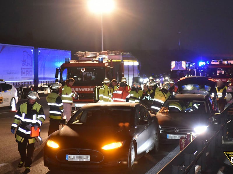 A 41-year-old Tesla Model S driver near Munich, Germany, noticed that a Volkswagen Passat was behaving strangely earlier this week, slamming repeatedly into the road’s guardrails. The Tesla driver then noticed the man in the driver’s seat was unconscious, so he drove in front of the Passat, applied the brakes to make contact, and gradually brought the car to a halt. It’s believed the Passat driver may have suffered a stroke, and the local fire department was quickly on the scene to assist.