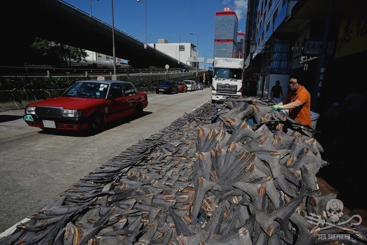 Late last year, a Sea Shepherd operative caught some damning video footage: two shipping containers owned by Maersk — the self-described “world’s largest container shipping company” — being offloaded on a Hong Kong street, filled with shark fins.
