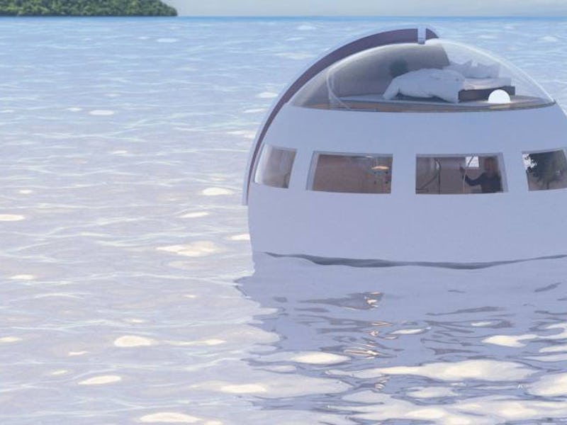 The spherical pods will be multi-story affairs. The mid-level will contain a sitting area with windows wrapping all around, putting guests closer to the water. The upper floor houses the bed and is topped with a curved glass dome designed to afford a perfect view of the sky as the guests are rocked to sleep — and hopefully not to seasickness — by the waves.