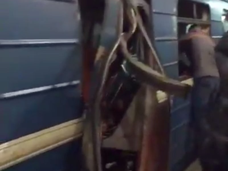 The stations were evacuated following the blasts, and pictures and videos began to emerge on Twitter showing the chaotic aftermath and a severely damaged metro train at the scene.