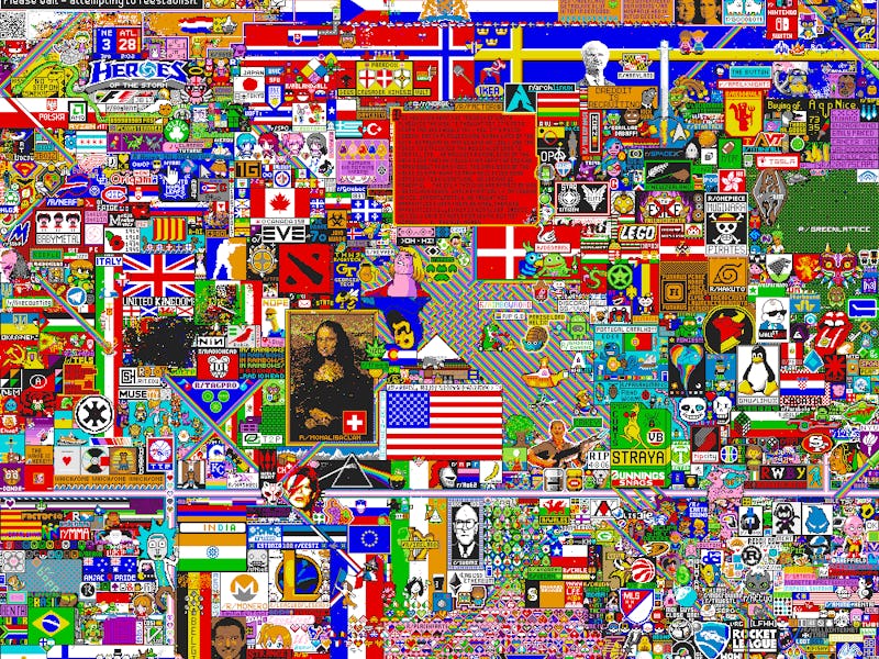The rules of /r/place were simple: Each user could change the color of one pixel on the board every five minutes, anywhere they wanted, and as many times as they wanted. The subreddit’s sidebar — a place where rules and instructions are located — reads, “There is an empty canvas. You may place a tile upon it, but you must wait to place another. Individually, you can create something. Together you can create something more.” It’s a nice message, and a challenge that many couldn’t ignore.