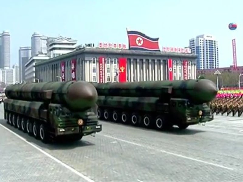 The parade featured thousands of soldiers goose-stepping in formation, military planes flying overhead in the shape of the number “105,” and missile vehicles bearing massive weapons, some of which the international community has never seen before. While analysts are familiar with most of the missiles on display — such as the solid-fuel submarine-launched ballistic missiles North Korea tested in February (KN-11) and a land-based version of the same missile (KN-15) — it is not yet clear exactly what kind of behemoths were carried on a few of these transporter erector launchers (TELs).