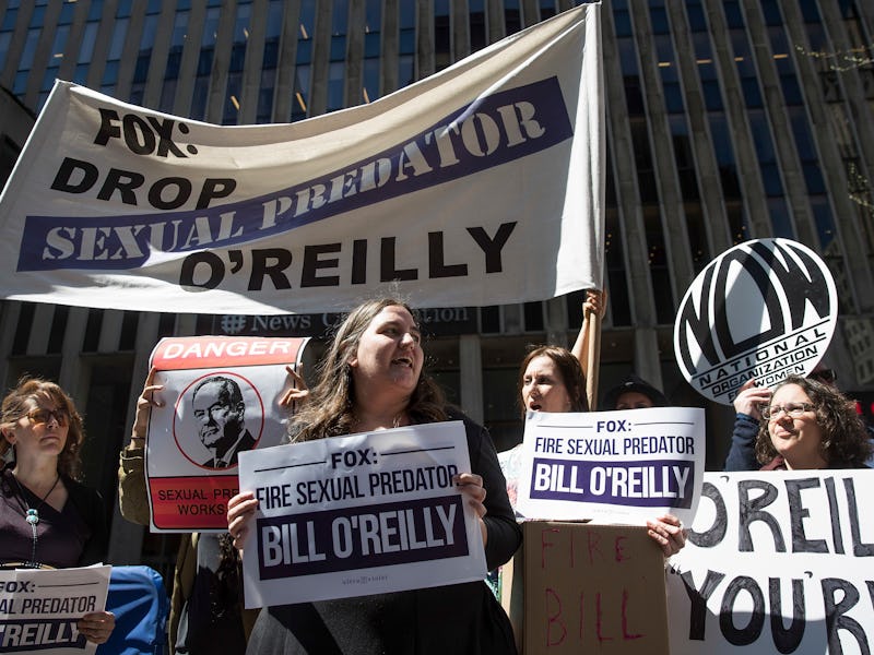 The host’s cable news downfall came after a swift series of events over the last month: First, it was disclosed that he and Fox News paid out $13 million in settlements with five different women who accused O’Reilly of sexual harassment. Then, activists groups began pressuring advertisers to drop O’Reilly’s program; over 40 eventually pulled their money away from the 8 p.m. program. Finally, financially hobbled and the target of street protests, Fox News pulled the plug on the host’s 21-year run on the network. Women’s rights group UltraViolet, which led the charge against O’Reilly, claimed victory when the news was released — and then noted that there was more work to be done.