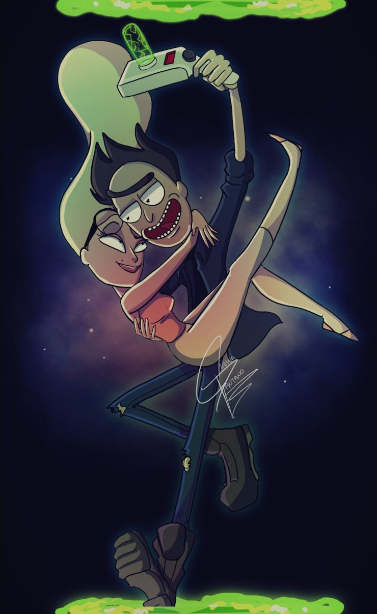 Rick and Morty has amassed a monstrous following, not only among fans of edgy animation, but among earnest TV viewers who enjoy more sentimental shows like Adventure Time, Steven Universe, and Gravity Falls, the latter of which trades Easter eggs with Rick and Morty. Work like Pantano’s allows that certain breed of fan to explore Justin Roiland’s original characters from a more emotional, intimate angle — the show masterfully gives us tiny glimpses what motivates Rick only to comically snatch them away just moments later. Pantano’s Rick is miserable not because of nihilism or loneliness, but because of the loss of a woman who understood him. Pantano’s Bonnie — and subsequently her Rick — are almost too real for Adult Swim, and they continue to captivate their audience online.