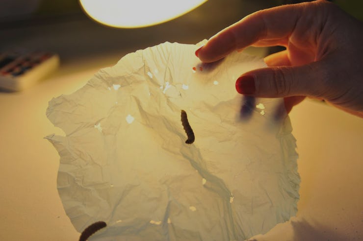 Federica Bertocchini, a research biologist with the Spanish National research Council, came upon a colony of wax worms feasting on honeycomb panels stored in her house. “I removed the worms, and put them in a plastic bag while I cleaned the panels,” she says in a release. “After finishing, I went back to the room where I had left the worms and I found that they were everywhere. They had escaped from the bag even though it had been closed and when I checked, I saw that the bag was full of holes. There was only one explanation: The worms had made the holes and had escaped. This project began there and then.”