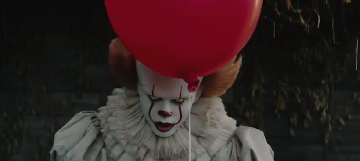 But, then there’s a balloon. And while this trailer isn’t as scary as the first one, that balloon is really, really creepy. As if that weren’t enough, there’s another much more complete shot of Pennywise behind an inverted triangle of balloons right before the trailer ends. I’m not totally sold on the new Pennywise design quite yet, but I certainly don’t like the look of this creepy clown.