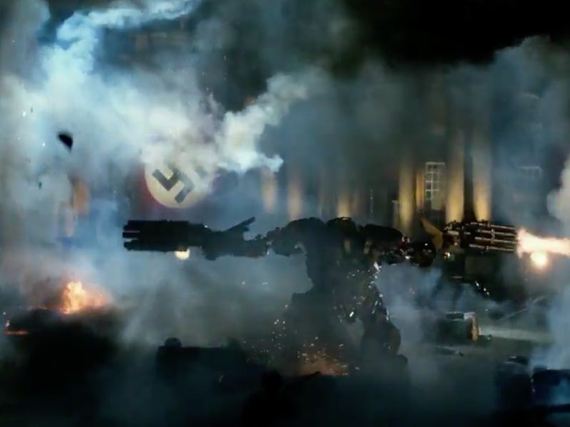 It’s unknown what, exactly, these legendary Transformers are here to protect Earth from (probably that giant ship crashing into the moon), but I’m less concerned about prophecy and more interested in robot-on-Nazi action. Towards the end of the spot, a 1940s-era car drives up to Nazi base, transforms, and unloads two huge guns. Chances are there won’t be many scenes in the final movie set during the war, but if they’re anything like this, we’ll take ‘em.
