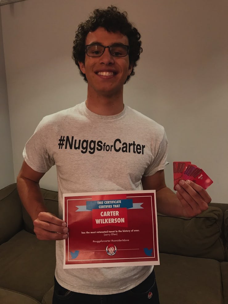 So said Nevada high schooler Carter Wilkerson on Twitter in response to Wendy’s promise to give him free chicken nuggets for a year if he could drum up an unheard of number of retweets.